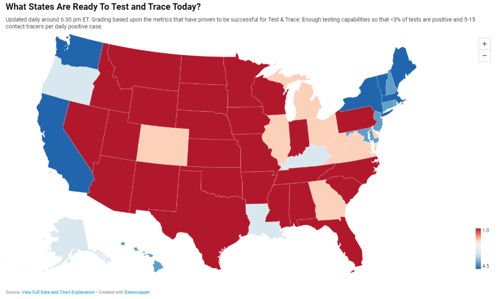 Most states are not ready to find and trace all of their new COVID-19 cases as the country heads into a new wave of outbreaks. Screenshot via Test and Trace, taken on October 18.
