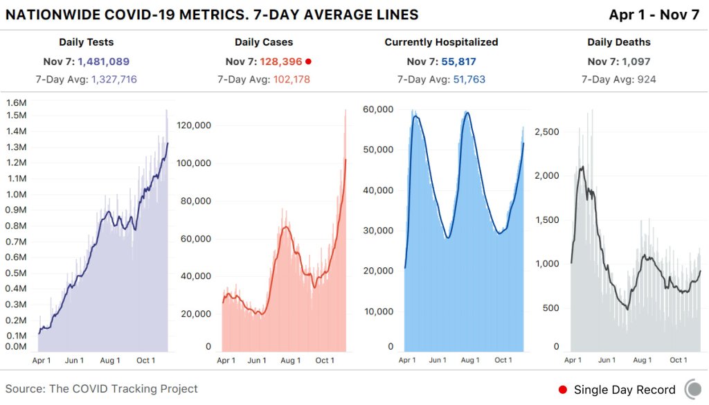 There is no doubt that we’re seeing a third national surge, and we should not expect it to let up anytime soon. I recommend checking the COVID-19 Risk Levels Dashboard (by the Harvard Global Health Institute, Brown School of Public Health, et al.) for more detail on the current risk in your community.