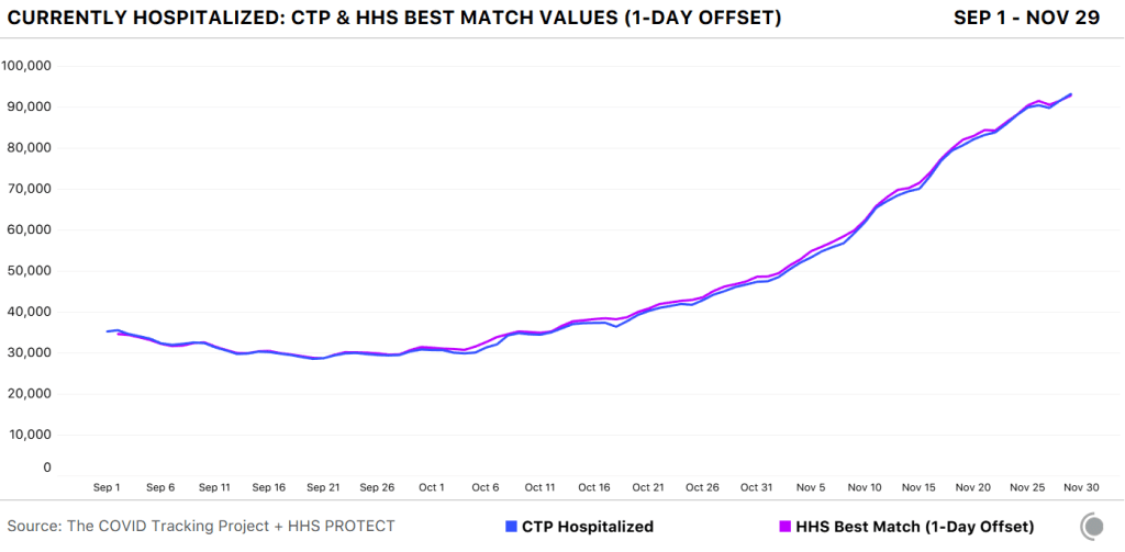 A new analysis, published this past Friday by the COVID Tracking Project, highlights how reliable the HHS dataset has become. The analysis compares HHS’s counts of hospitalized COVID-19 patients to the Project’s counts, compiled from states. Unlike the analysis I worked on in August, however, this recent work benefits from HHS’s expanded metrics and more thorough documentation from both the federal agency and states. If a state reports only confirmed cases, for example, this number can now be compared directly to the corresponding count of confirmed cases from the HHS.