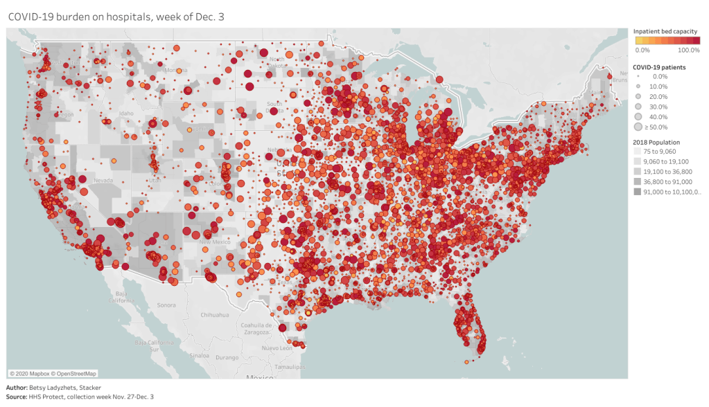 To get started with this dataset, you can zoom in to look at your community on this Tableau dashboard I made, visualizing the most recent week of data. (That most recent week of data reflects November 27 through December 3. As the dataset was first published last Monday, December 7, I’m anticipating an update tomorrow.)