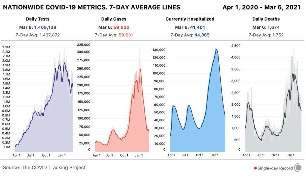 In the past week (February 28 through March 6), the U.S. reported about 417,000 new cases, according to the COVID Tracking Project. This amounts to: