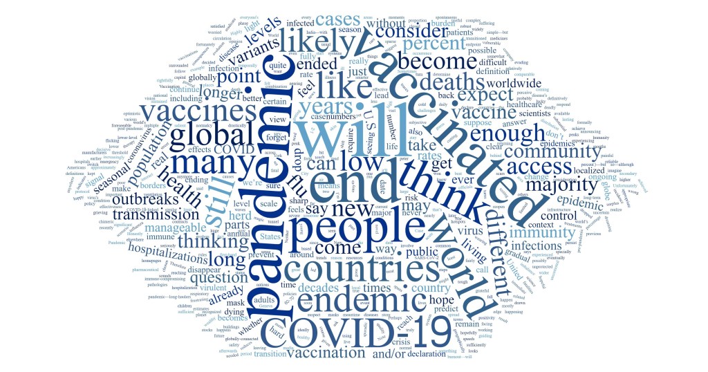 Working with The Open Notebook, I surveyed 26 other COVID-19 reporters and communicators. I asked when they thought the pandemic might come to an end, as well as how they would take lessons from the past year into the “post-COVID” stages of their careers.
