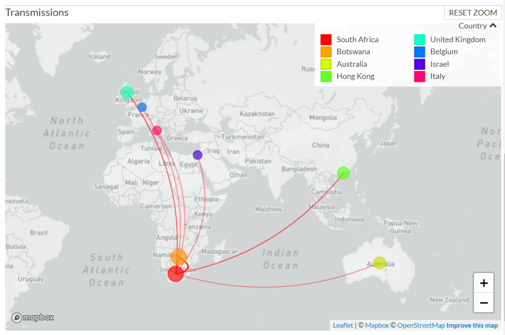 As of Sunday morning, genetic sequences from 127 confirmed Omicron cases have been shared to GISAID, the international genome sharing platform. The majority of these cases (99) were identified in South Africa, while 19 were identified in nearby Botswana, two in Hong Kong, two in Australia, two in the U.K., one in Israel, one in Belgium, and one in Italy.