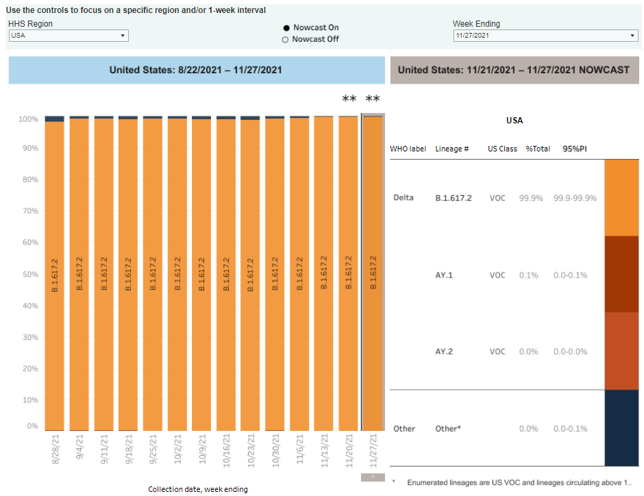 - 100% of new cases are Delta-caused (as of November 27)