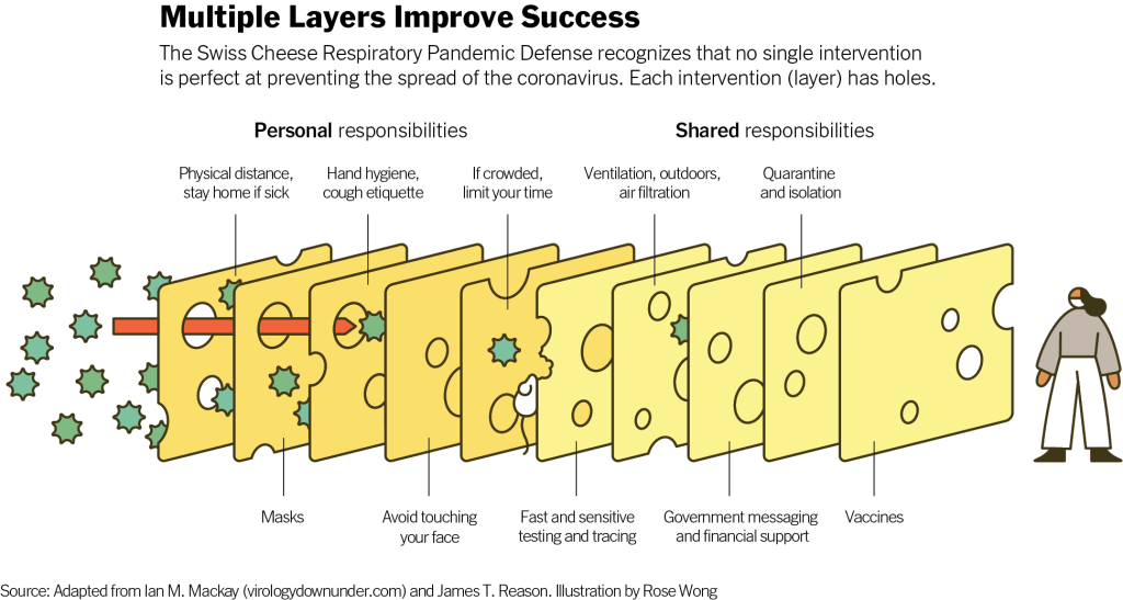 Remember that Swiss cheese model of pandemic interventions? Vaccines may be the best protection we have against the coronavirus, but they’re still just one layer of protection. All the other layers—masks, testing, ventilation, etc.—are still necessary, too. Especially when we’re dealing with a new variant that might not respond as well to our vaccines.