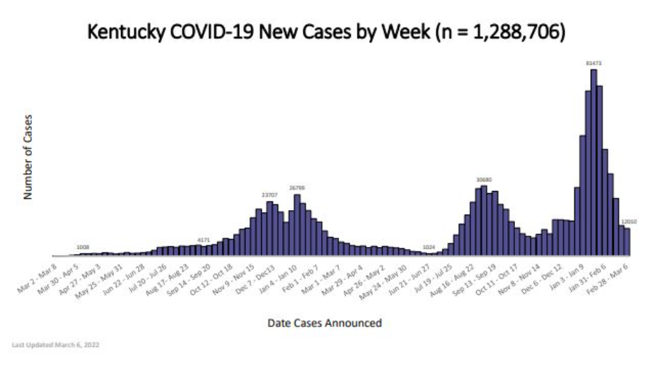 While updating my vaccine data annotations yesterday, I noticed that Kentucky has made some changes to its COVID-19 data reporting. Kentucky’s state health department has switched from daily to weekly updates, following a common trend in state reporting over the past few weeks.