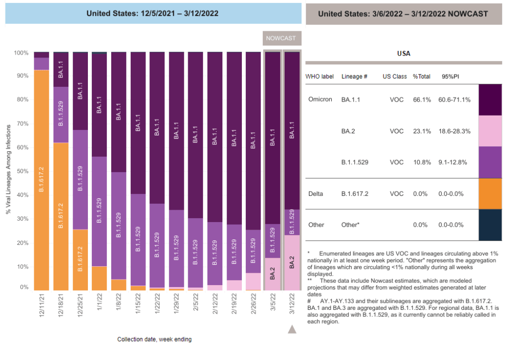 BA.2 caused about one in four U.S. COVID-19 cases in the week ending March 12, according to CDC estimates.