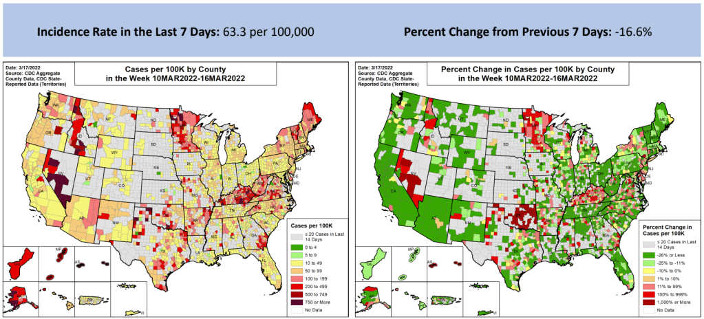 National COVID-19 case numbers are still falling, as we reach two months since the peak of the Omicron surge. The U.S. reported about 30,000 new cases each day last week, according to the CDC; that’s the lowest this number has been since last summer.