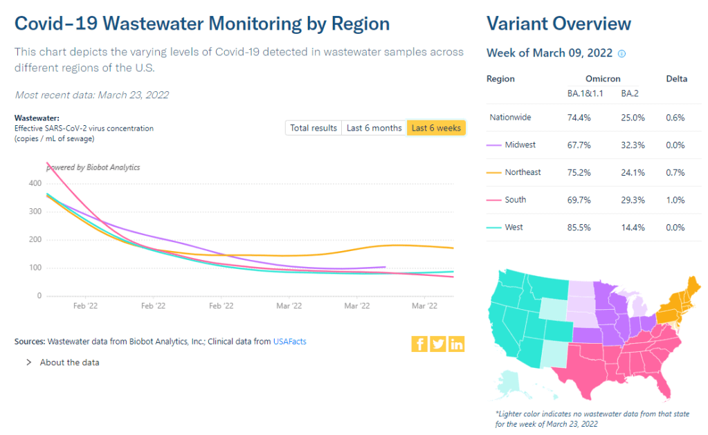 - 100% of new cases are Omicron-caused; 35% BA.2-caused (as of March 19)