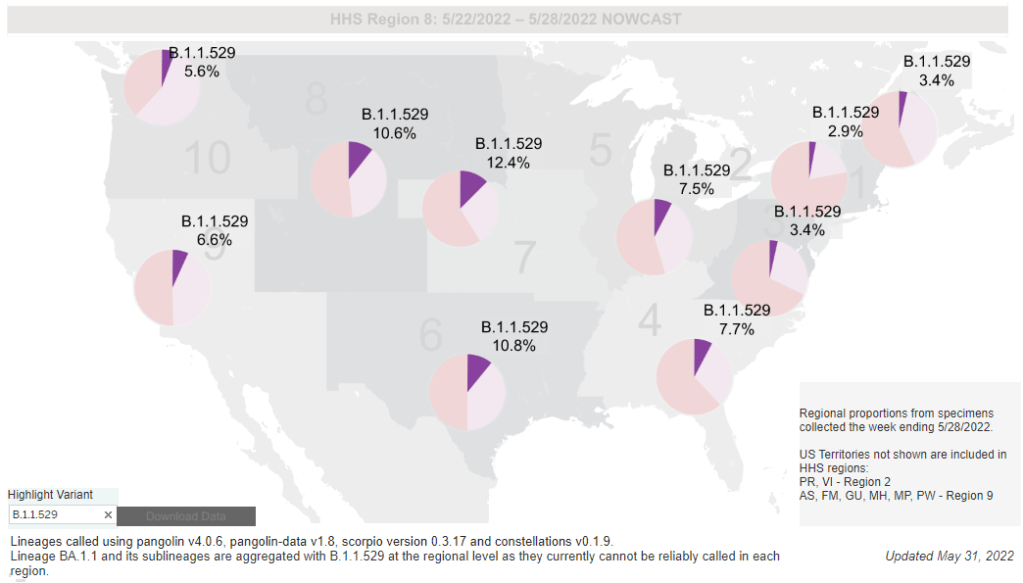 CDC data do show that the B.1.1.529 group (which includes BA.4/BA.5) is causing over 10% of new cases in the Plain States, Gulf Coast, and Mountain West—compared to under 5% in the Northeast, where BA.2.12.1 is more dominant. This data aligns with local reports of BA.4 and BA.5 spreading in wastewater in some Midwestern states that track variants in their sewage. For example, scientists at the Metropolitan Council in the Twin Cities recently said they expect BA.4 and BA.5 to “replace BA.2.12.1 as the dominant variants” in the next few weeks.