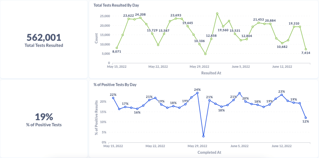 - Walgreens COVID-19 testing dashboard: Another source for testing trends, as government sources become less reliable, is the Walgreens dashboard—incorporating data from COVID-19 PCR testing at more than 5,000 Walgreens locations across the country. In partnership with Aegis Services, many of these test samples are sequenced or identified as specific variants via S-gene target failure. The Walgreens dashboard has a shorter lag time than the CDC’s variant prevalence estimates, so it may be a useful way to see trends in advance.