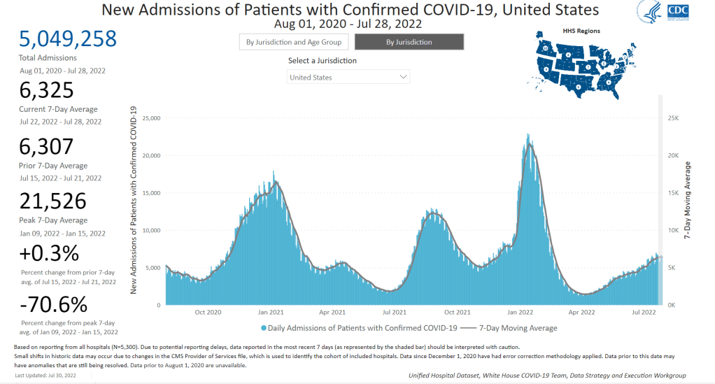 - 82% of new cases are caused by Omicron BA.5; 13% by BA.4 (as of July 23)
