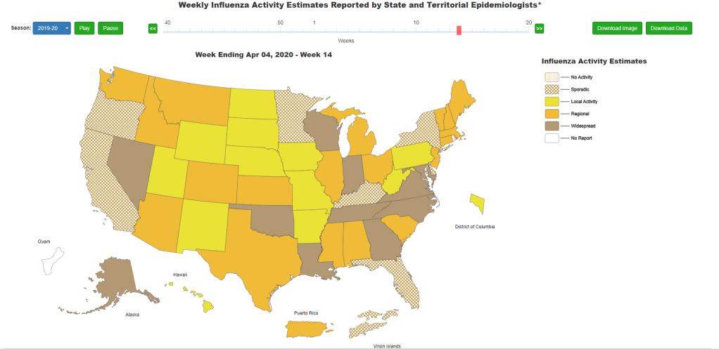 The CDC reports data from these surveillance programs on a dashboard called FluView. As you can see, the CDC provides estimates about flu activity by state and by different demographic groups, but the data may not be very granular (eg. no estimates by county or metro area) and are provided with significant time delays.