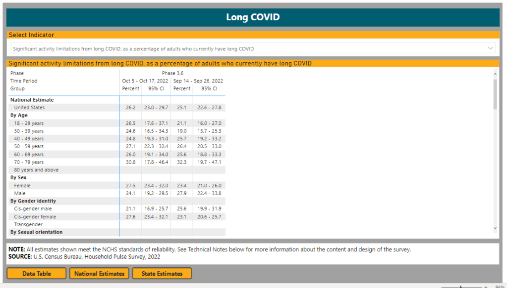 The CDC and Census’ Household Pulse Survey reports about 14% of all U.S. adults have experienced Long COVID symptoms, and about one in four adults who currently have Long COVID are experiencing “significant activity limitations” due to their symptoms. But the Social Security Administration itself said that it’s only identified 40,000 disability claims that “include indication of a COVID infection at some point,” in a comment for my story.