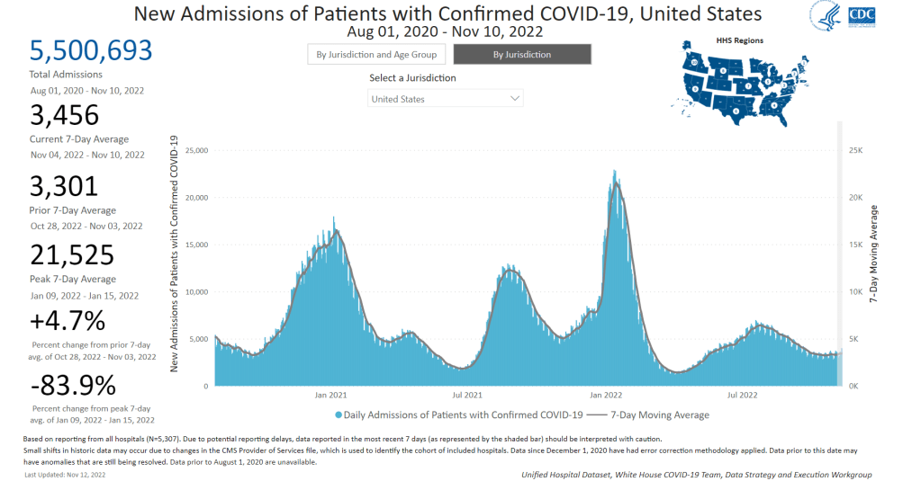 We are beginning to see the impacts of colder weather and new variants this week, as both official COVID-19 cases and new hospital admissions went up slightly: increasing by 6% and 5% from the prior week, respectively.
