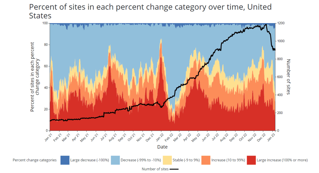 At the same time, these surveillance technologies will continue to face challenges around standardization and public buy-in. The CDC’s big contract with Biobot expires this month, and I’ve already noticed a decline in sites with recent data on the agency’s dashboard—will CDC officials and local agencies step in to fill gaps, or will wastewater testing become even more sporadic?