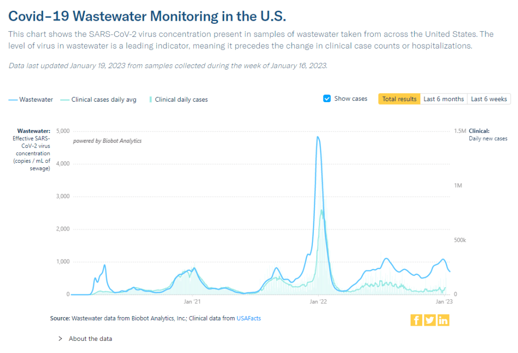 Official COVID-19 case numbers and new hospital admissions both reported declines this week, according to the CDC (of 24% and 16% respectively, compared to the prior week). Biobot’s wastewater surveillance data also show a decline, with coronavirus concentration at a similar level to mid-November 2022, just before Thanksgiving.