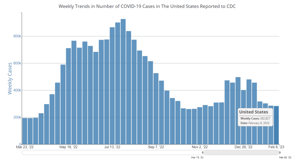 In the past week (February 2 through 8), the U.S. officially reported about 280,000 new COVID-19 cases, according to the CDC. This amounts to: