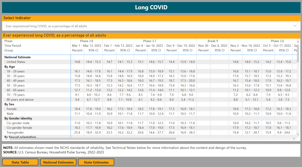 Meanwhile, the Slate piece dismisses Long COVID, arguing that the condition is “neither as common nor as severe” as experts have warned it might become. Like the Washington Post piece, this article bases its conclusion on flawed research that focuses on biased health records, and other types of biased data. For example, the author argues that people aren’t getting social security disability benefits in large numbers; but Long COVID patients face many barriers to this program, as I’ve covered for KHN.
