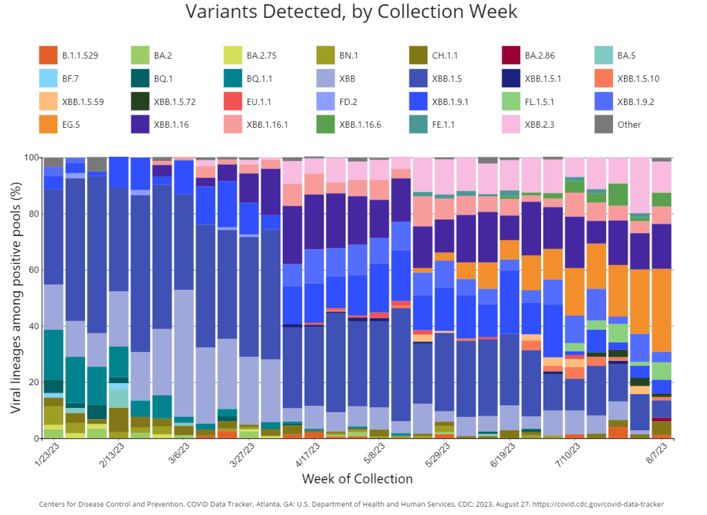 The FDA and CDC are planning to distribute booster shots this fall, based on the XBB.1.5 variant that dominated COVID-19 spread in the U.S. this spring and earlier in the summer. As Eric Topol points out in a recent Substack post, this booster choice made sense a couple of months ago, but it’s unlikely to work well against BA.2.86 if that variant takes off.