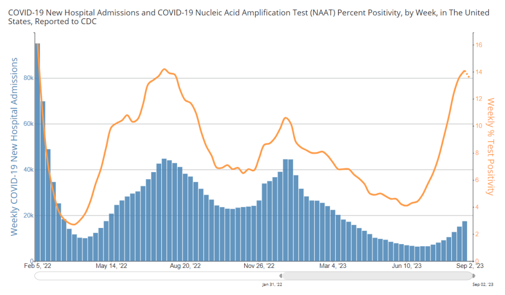 - 23% of new cases are caused by Omicron XBB.1.6; 22% by EG.5; 15% by FL.1.5.1 (as of September 2)