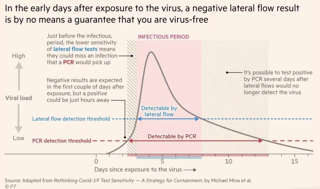 After exposure to the coronavirus, someone may test negative on rapid antigen tests for multiple days before their viral load becomes high enough for such a test to detect their infection. Chart by Michael Mina, adapted by the Financial Times. As Omicron spreads rapidly through the U.S., this variant is driving record case numbers—and record demand for testing, including both PCR and rapid at-home tests. In other words, it feels harder than ever to get tested for COVID-19, largely because more people currently need a test due to recent exposure to the virus than at any other time during the pandemic.